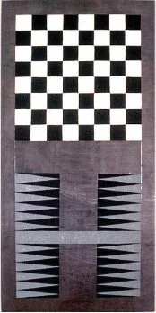 Price’s images—3-D cubes, jiggly diamonds, gingham—invoke chessboards, a type of grid associated with the fine arts over many centuries and cultures, both as subject and object (after 1923, the arch-dadaist Marcel Duchamp mostly gave up art for chess). Painting and chess possess several uncanny relationships—things like figure/ground, movement, but also strategy, thought, reflection, chance, and the hyperbolic goal of ultimate achievement. In the end, I imagine Bruce Price being a frustrated chess player, impatient with all its fixed rules and movement patterns, preferring to give the pieces more freedom, never having things stay the same.